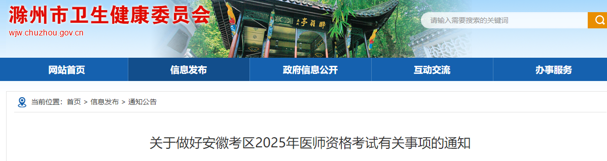 2025年醫(yī)師資格考試(安徽滁州考點(diǎn))報(bào)名審核安排及要求已公布!請相關(guān)考生及時(shí)查看官方通知要求,按時(shí)參與報(bào)名審核。