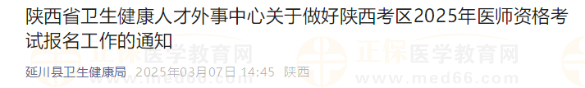 陜西省衛(wèi)生健康人才外事中心關于做好陜西考區(qū)2025年醫(yī)師資格考試報名工作的通知