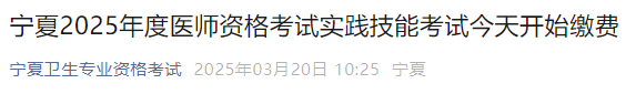 詳情考生注意!寧夏考區(qū)2025年醫(yī)師資格實踐技能繳費3月20日開始!考生必須在完成報名審核后成功繳費才視為成功報名!請相關考生提前了解繳費要求,按時完成繳費!