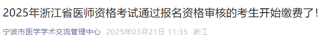 2025年浙江省醫(yī)師資格考試通過報(bào)名資格審核的考生開始繳費(fèi)了!