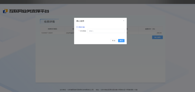 4.進入支付頁面,確認項目、金額等信息無誤后,點擊確認繳費按鈕,并輸入報考人手機號,如圖2、圖3所示。