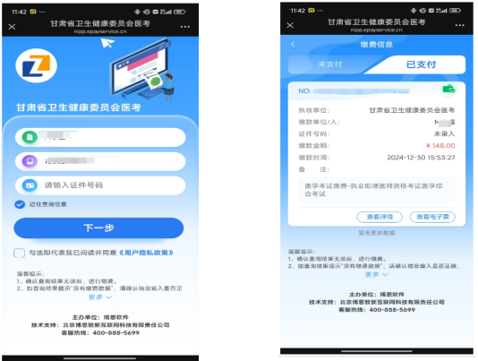 2、考生在規(guī)定時間內(nèi)完成網(wǎng)上繳費視為報名成功,逾期未繳費視為自動放棄考試。繳費成功后不參加考試者,視為缺考,報名費用不予退還。請各位考生在報名系統(tǒng)內(nèi)務(wù)必綁定微信,并且關(guān)注“國家醫(yī)學考試網(wǎng)”和“甘肅衛(wèi)生健康人才網(wǎng)”微信公眾號,后期可接收考試重要信息通知。考生報名繳費過程中如有疑問,請咨詢各考點。
