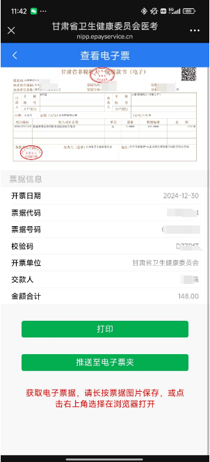 2.關(guān)注“甘肅省衛(wèi)生健康委員會人才服務(wù)中心”公眾號,選擇發(fā)票打印,進行電子票據(jù)查詢打印,如下圖6、圖7所示。