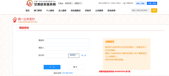 4.進入甘肅政務(wù)服務(wù)網(wǎng)——統(tǒng)一支付平臺——查詢/票據(jù)打印,輸入繳款碼(注:繳款碼根據(jù)圖5上的繳款碼信息進行保留)、繳款人(注:繳款人為考試報名系統(tǒng)登錄賬號)進行電子票據(jù)的查詢打印,如圖11、圖12、圖13所示。