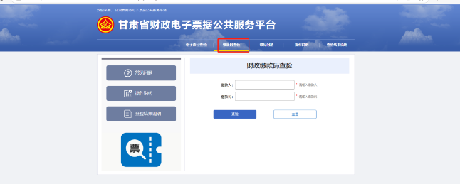 5.進入http://125.74.7.71:18002/billcheck甘肅省財政電子票據(jù)公共服務(wù)平臺,繳款碼查驗功能進行票據(jù)查詢,如圖14所示。