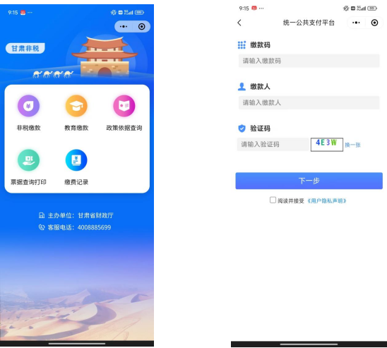 6.微信、支付寶小程序關(guān)注“甘肅非稅”,在票據(jù)查詢打印功能進行查詢打印票據(jù),如圖15、圖16所示。