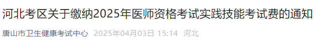 4月4日開始!河北唐山2025年醫(yī)師資格實(shí)踐技能繳費(fèi)時(shí)間已定