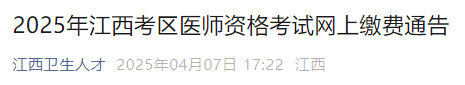 為便捷考生繳費(fèi),2025年江西考區(qū)醫(yī)師資格考試費(fèi)繼續(xù)全部實(shí)行網(wǎng)上支付,現(xiàn)將有關(guān)事項(xiàng)通告如下。
