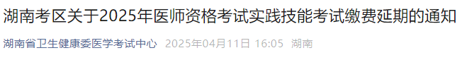 繳費(fèi)延期!湖南省2025年醫(yī)師資格實(shí)踐技能繳費(fèi)延長(zhǎng)至4月12日!