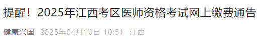 提醒!2025年江西考區(qū)醫(yī)師資格考試網(wǎng)上繳費(fèi)通告