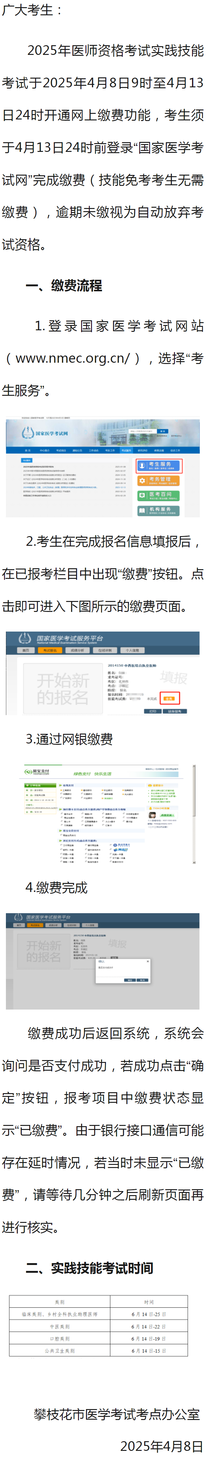 4月13日截止!四川平昌考點(diǎn)2025年醫(yī)師資格實(shí)踐技能考試?yán)U費(fèi)開(kāi)始