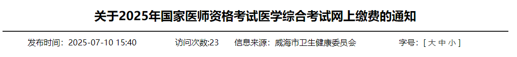 7月17日起,山東威海2025年醫(yī)師資格綜合筆試?yán)U費(fèi)開始!