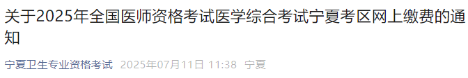 官方提醒,寧夏考區(qū)2025年醫(yī)師資格綜合筆試?yán)U費7月17日開始!