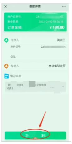 4、再次核對金額,點(diǎn)擊支付”按鈕。如下圖。