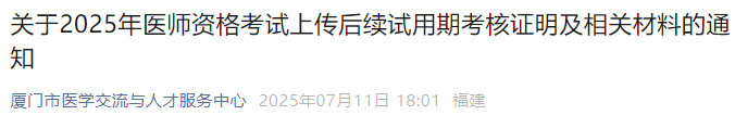 重要提醒!福建廈門2025年醫(yī)師筆試這兩類考生需補交證明資料!
