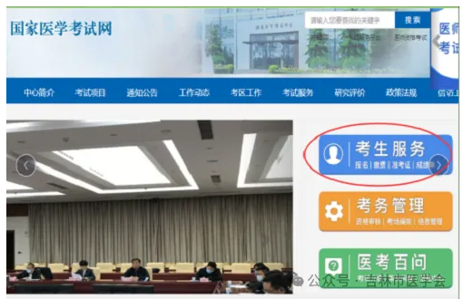 1.登錄“國家醫(yī)學(xué)考試網(wǎng)”,選擇“考生服務(wù)”。