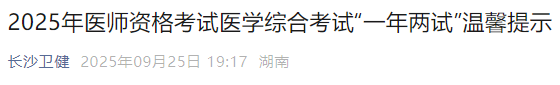 湖南長(zhǎng)沙2025年醫(yī)師資格“一年兩試”報(bào)名繳費(fèi)已開(kāi)始,速去!