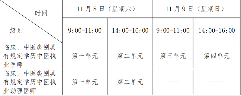 醫(yī)學(xué)綜合考試全部采用計算機(jī)化考試。全國統(tǒng)一考試時間為:2025年11月8日至9日,考試時間安排如下: