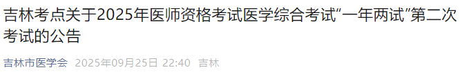 點擊查看:吉林市2025年醫(yī)師資格“一年兩試”報名開始,速看報名流程!