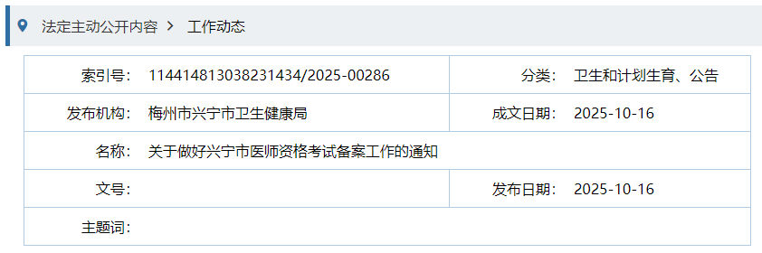 - · 廣東興寧2026年醫(yī)師資格考試報名備案開始!10月31日截止!