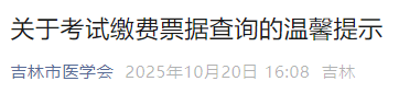 吉林市2025年醫(yī)師資格二試?yán)U費已開始,繳費票據(jù)查詢方法看這里!