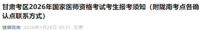 甘肅隴南考點(diǎn)官方發(fā)布了2026年醫(yī)師資格考試報(bào)名|審核要求及聯(lián)系方式,請(qǐng)相關(guān)考生及時(shí)查看,做好報(bào)名審核準(zhǔn)備!