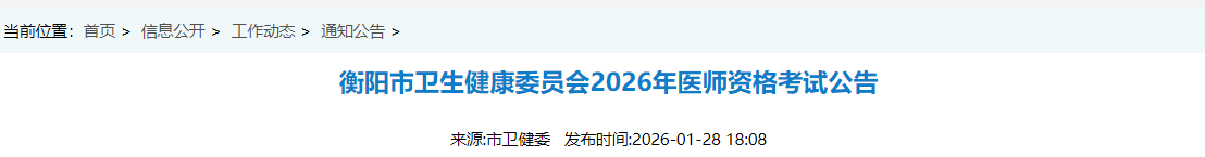 湖南衡陽(yáng)考點(diǎn)2026年醫(yī)師資格考試報(bào)名|審核時(shí)間安排及要求已公布!請(qǐng)相關(guān)考生及時(shí)查看,做好報(bào)名審核準(zhǔn)備!
