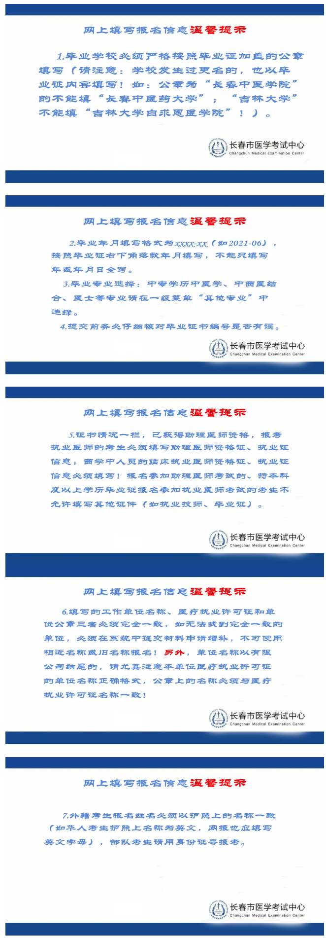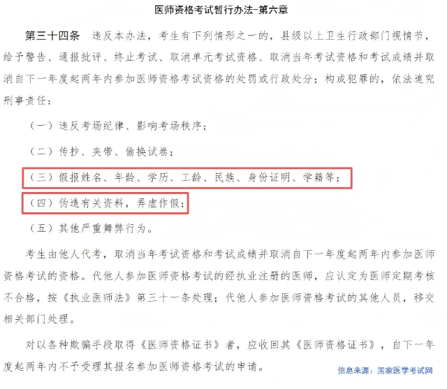 3、考生務(wù)必對(duì)本人報(bào)考信息、審核材料真實(shí)性負(fù)責(zé),使用虛假信息、提供虛假材料報(bào)名的,將根據(jù)《醫(yī)師資格考試暫行辦法》第六章第34條進(jìn)行處理。