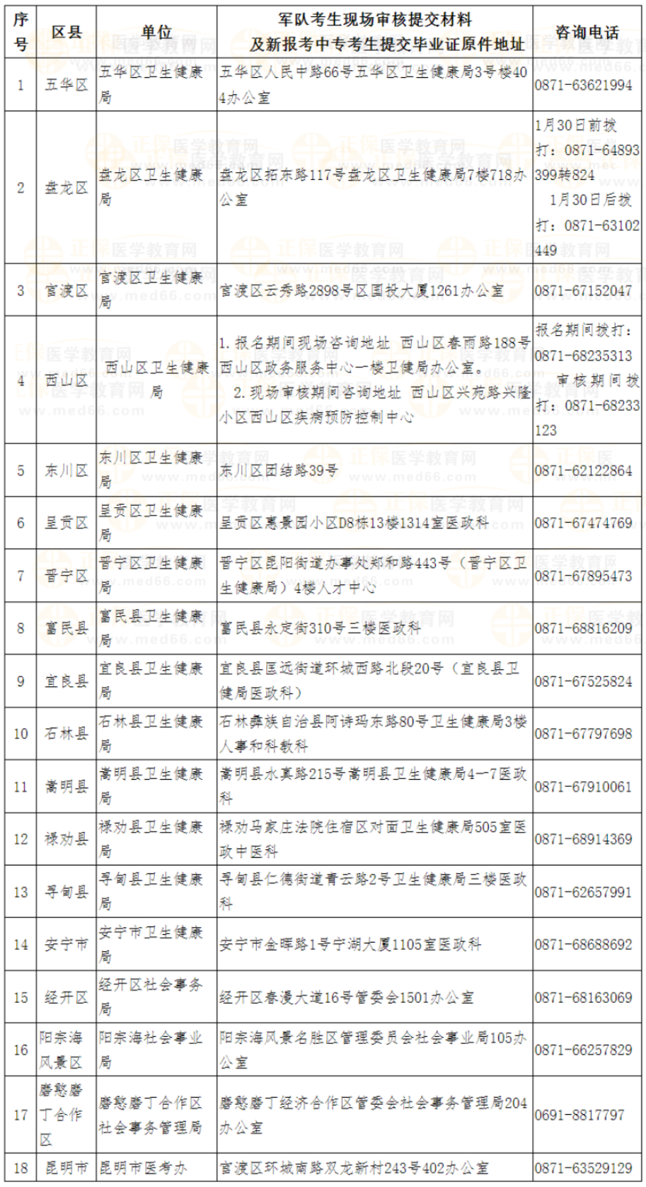 4.2026年昆明考點(diǎn)各縣區(qū)醫(yī)師資格考試現(xiàn)場(chǎng)審核地址及咨詢電話
