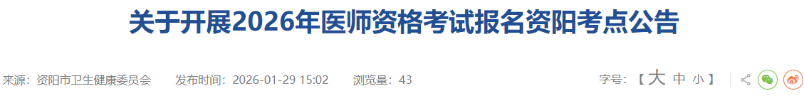 四川資陽考點2026年醫(yī)師資格考試報名|審核|考試要求已公布!請相關(guān)考生及時查看,做好報名審核準備!