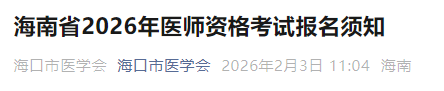海南??诳键c2026年醫(yī)師資格考試報名|審核|考試安排已公布!請相關考生及時查看,做好報名審核準備!