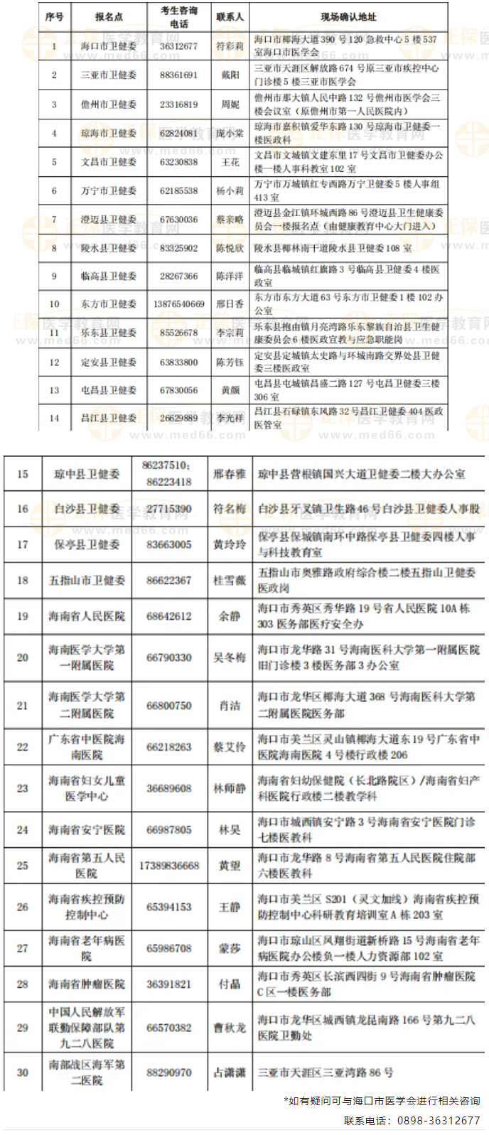 附件2.2026年醫(yī)師資格考試報名點咨詢電話和現場確認地址