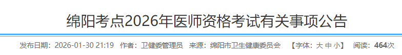 四川綿陽(yáng)考點(diǎn)2026年醫(yī)師資格考試報(bào)名|審核|考試安排已公布!請(qǐng)相關(guān)考生及時(shí)查看,做好報(bào)名審核準(zhǔn)備!