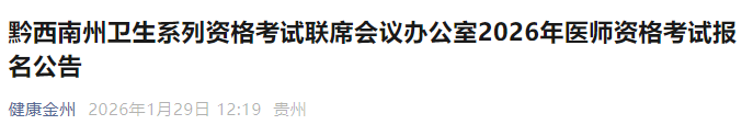 貴州黔西南考點(diǎn)2026年醫(yī)師資格考試報(bào)名|審核|考試安排已公布!請(qǐng)相關(guān)考生及時(shí)查看,做好報(bào)名審核準(zhǔn)備!
