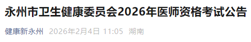 根據(jù)《國家衛(wèi)生健康委員會(huì)醫(yī)師資格考試委員會(huì)公告》(2026年第1號)和《湖南省衛(wèi)生健康委員會(huì)公告》(2026年1號)的規(guī)定,結(jié)合我市實(shí)際,現(xiàn)就我市2026年醫(yī)師資格考試工作有關(guān)事項(xiàng)公告如下: