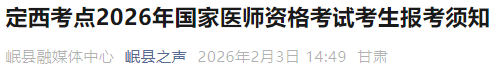 甘肅定西考點(diǎn)2026年醫(yī)師資格考試報(bào)名&審核安排及要求已公布!請相關(guān)考生及時查看,做好報(bào)名審核準(zhǔn)備!