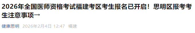 2026年全國醫(yī)師資格考試福建考區(qū)考生報(bào)名已開啟!思明區(qū)報(bào)考考生注意事項(xiàng)→