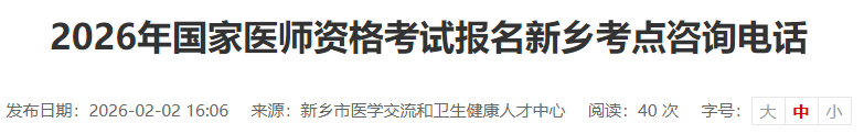 河南新鄉(xiāng)考點(diǎn)官方發(fā)布2026年醫(yī)師資格考試報(bào)名審核咨詢(xún)電話(huà)公示!請(qǐng)相關(guān)考生及時(shí)查看,做好報(bào)名審核準(zhǔn)備!