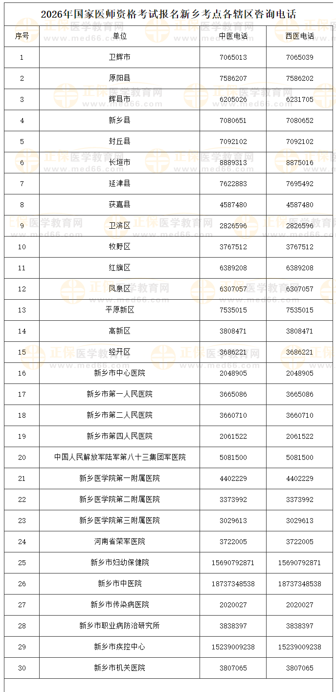 河南新鄉(xiāng)考點(diǎn)2026年醫(yī)師資格考試報(bào)名審核咨詢(xún)電話(huà)公示