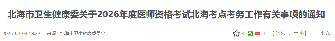 北海市衛(wèi)生健康委關(guān)于2026年度醫(yī)師資格考試北海考點(diǎn)考務(wù)工作有關(guān)事項(xiàng)的通知