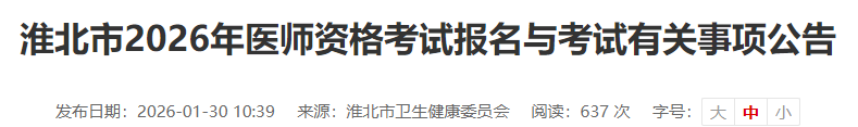 安徽淮北2026年醫(yī)師資格考試報名|審核|繳費|考試安排已公布!請相關考生及時查看,按時完成報名審核!