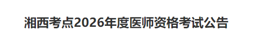 根據(jù)《國(guó)家衛(wèi)生健康委員會(huì)醫(yī)師資格考試委員會(huì)公告》(2026年第1號(hào))和《湖南省衛(wèi)生健康委員會(huì)公告》的規(guī)定,現(xiàn)就湘西考點(diǎn)2026年度醫(yī)師資格考試工作有關(guān)事項(xiàng)公告如下: