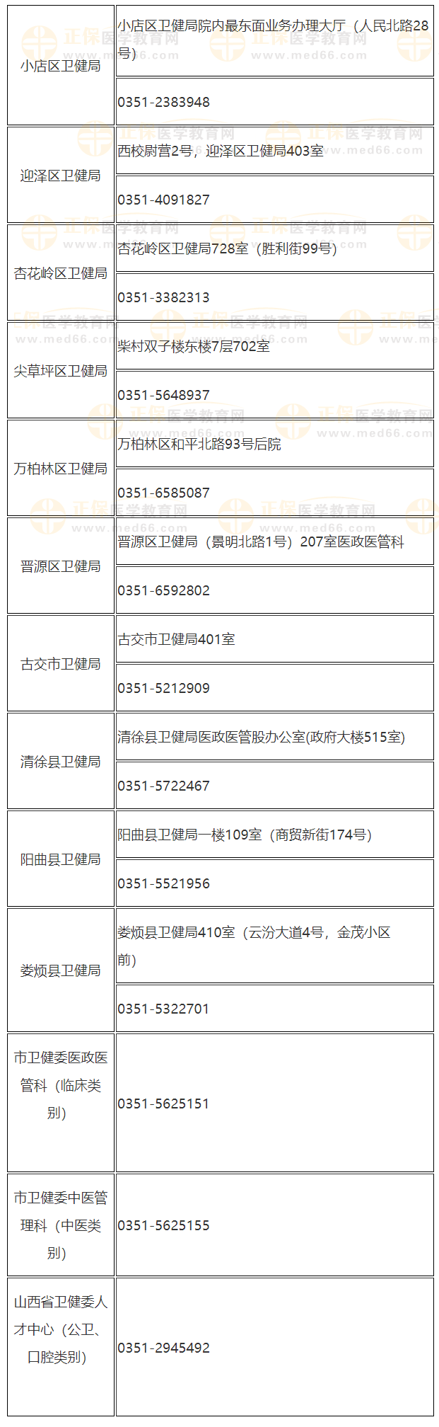 在太原市市屬醫(yī)療機(jī)構(gòu)試用的臨床類別(含鄉(xiāng)村全科)、中醫(yī)類別考生選擇考點為太原考點(代碼:01),公衛(wèi)類別、口腔類別考生選擇考點為省直考點(代碼:02)。