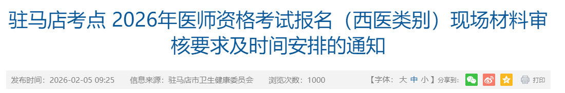 河南駐馬店2026年醫(yī)師資格考試(西醫(yī))報(bào)名審核時(shí)間|要求已公布!請(qǐng)相關(guān)考生及時(shí)查看,按時(shí)完成報(bào)名審核!
