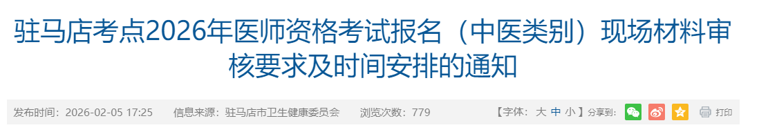 河南駐馬店2026年醫(yī)師資格考試(中醫(yī))報名審核時間|要求已公布!請相關考生及時查看,按時完成報名審核!