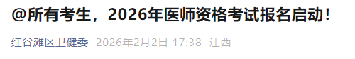 江西南昌紅谷灘區(qū)2026年醫(yī)師資格考試報(bào)名|審核|考試安排已公布!請(qǐng)相關(guān)考生及時(shí)查看,按時(shí)完成報(bào)名審核!