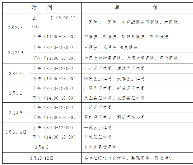 考生注意:以上時(shí)間安排只對(duì)各區(qū)縣衛(wèi)體局及各醫(yī)療機(jī)構(gòu),各區(qū)縣現(xiàn)場(chǎng)審核時(shí)間安排請(qǐng)咨詢各區(qū)縣衛(wèi)體局。