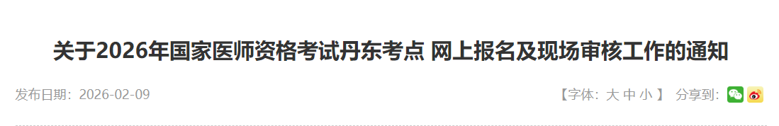遼寧丹東2026年醫(yī)師資格考試報名&審核時間安排及要求已公布!請相關(guān)考生及時查看,做好報名審核準備!