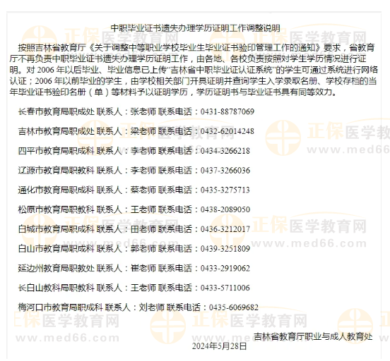 ●本省中專畢業(yè)證丟失需提供學歷證明(由各地、各校負責對學生學歷情況進行證明,具體聯(lián)系方式見下圖);