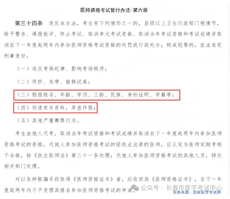 考生務(wù)必對本人報考信息、審核材料真實(shí)性負(fù)責(zé),使用虛假信息、提供虛假材料報名的,將根據(jù)《醫(yī)師資格考試暫行辦法》第六章第34條進(jìn)行處理。